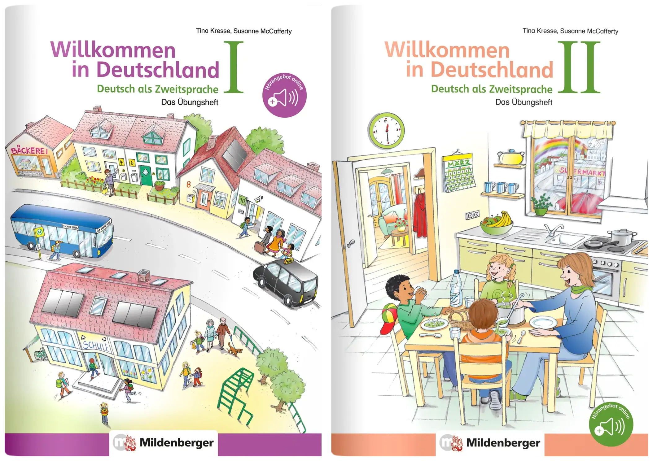 Mit den silbierten Übungsheften können sich alle Kinder zwischen 6 und 12 Jahren – auch ohne Vorkenntnisse – selbstständig und spielerisch einen grundlegenden Wortschatz und Grammatikstrukturen erarbeiten. Es wird durch kostenlose Hörangebote online ergänzt und bearbeitet diese Themenfelder: Vorstellung, Zahlen, Farben, in der Schule, Tiere (Zoo, Haus, Bauernhof, Wald und Wiese), mein Körper, Kleidung, gesund und krank, Familie, Geburtstag / Spielsachen / Spielplatz, Ausflug, Feste im Jahreskreis. Die beiden Übungshefte Deutsch als Fremdsprache I und II bauen aufeinander auf und decken die Themenfelder der Lehrpläne für „Deutsch als Zweitsprache“ ab. Das bewährte Sticker-Belohnungssystem stellt für die Kinder einen zusätzlichen Anreiz dar: Für jede bearbeitete Seite darf das Kind einen Sticker in ein Wimmelbild kleben. Das Lösungsheft für die schnelle Selbstkontrolle kann mit einem Handgriff herausgetrennt werden.